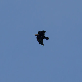 Weer een stuk verder maakte het pad een bocht naar links, waar talloze boerenzwaluwen door de lucht scheerden en met groepen tegelijk in een boom landden, waarin ze blijkbaar een goede roestplaats hadden gevonden. Ze waren overigens niet alleen, ook een zwerm roeken liet zich horen en zien.